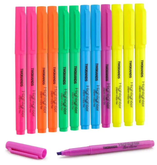 TWOHANDS Highlighters Assorted Colors,Chisel Tip Marker Pens,12-Count, 21304