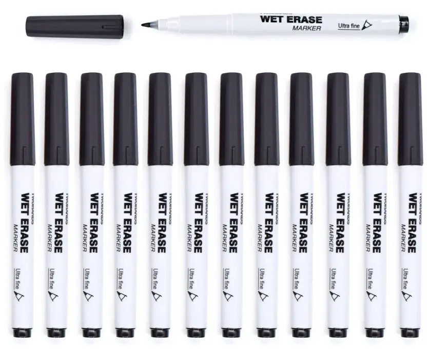 TWOHANDS Wet Erase Markers Ultra Fine Tip,0.7mm,Low Odor,Extra Fine Point,Black,Whiteboard Markers for Office,Home,or Planning Dry Erase Board, 20710
